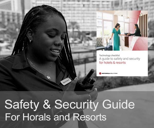 Motorola Solutions’ Safer Hospitality safety and security ecosystem helps your hotel meet security needs and requirements at all levels, from when a guest checks in to when your staff is taking care of a checked-out room. Using this checklist, we will explore how Motorola’s technology fits into each of these layers of security needed at your hotel.