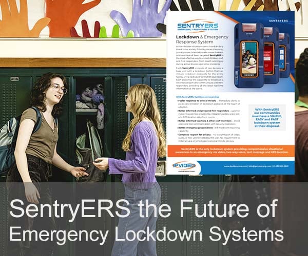 Among emergency lockdown systems, SentryERS is a revolutionary response system purposely built with schools and campus environments in mind. With a single button push, SentryERS initiates lockdown protocols and sends immediate alerts to police, providing superior incident awareness for officers and first responders with live video, voice, text, and GPS location data from classrooms and other areas where traditional video cameras cannot be deployed – making SentryERS completely compliant with Alyssa’s Law.