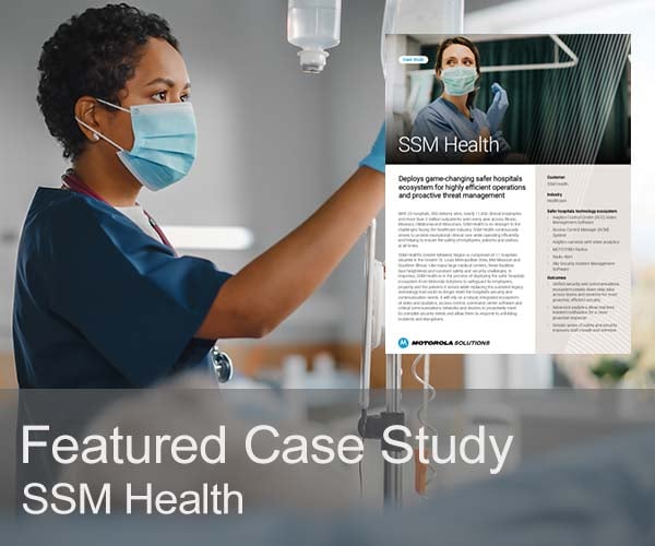 SSM Health’s Greater Midwest Region is comprised of 11 hospitals situated in the Greater St. Louis Metropolitan Area, Mid-Missouri and Southern Illinois. Like many large medical centers, these facilities face heightened and constant safety and security challenges. In response, SSM Health is in the process of deploying the safer hospitals ecosystem from Motorola Solutions to safeguard its employees, property and the patients it serves while replacing the outdated legacy technology that could no longer meet the hospital’s security and communication needs. It will rely on a robust, integrated ecosystem of video and analytics, access control, command center software and critical communications networks and devices to proactively meet its complex security needs and allow them to respond to unfolding incidents and disruptions.